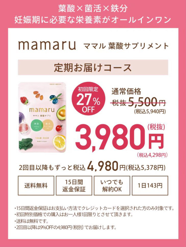 ※個人の感想であり、葉酸サプリメントは健康補助食品で妊娠や効果効能を確約するものではありません。